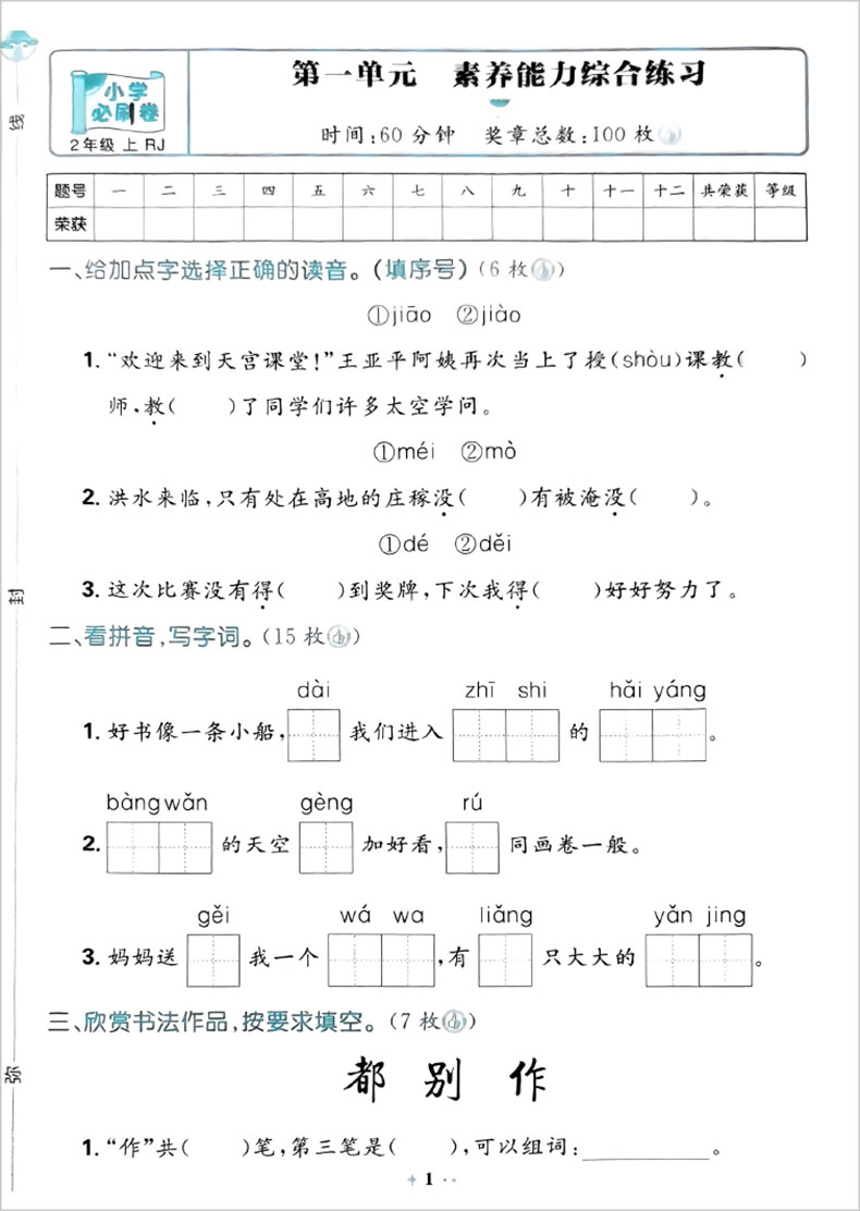 首页> 小学教辅> 二年级> 语文> 小学必刷卷 语文二年级上册 RJ人教版