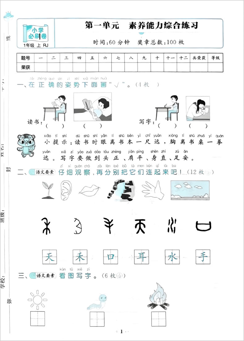 首页> 小学教辅> 一年级> 语文> 小学必刷卷 语文一年级上册 RJ人教版