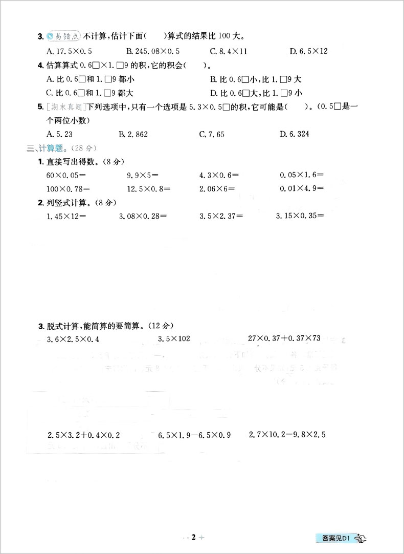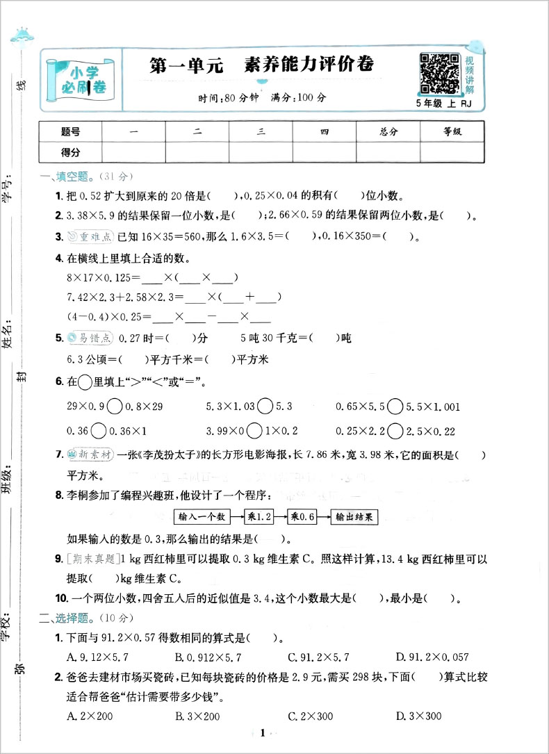 首页> 小学教辅> 五年级> 数学> 小学必刷卷 数学五年级上册 RJ人教版