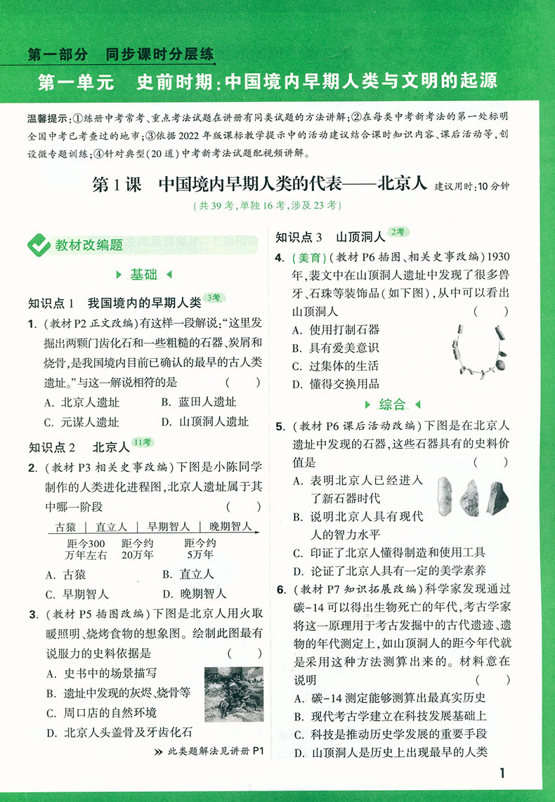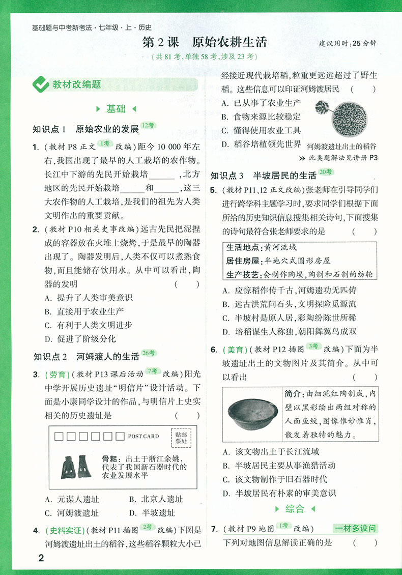 2024版万唯原创基础题与中考新考法七年级上册历史人教版