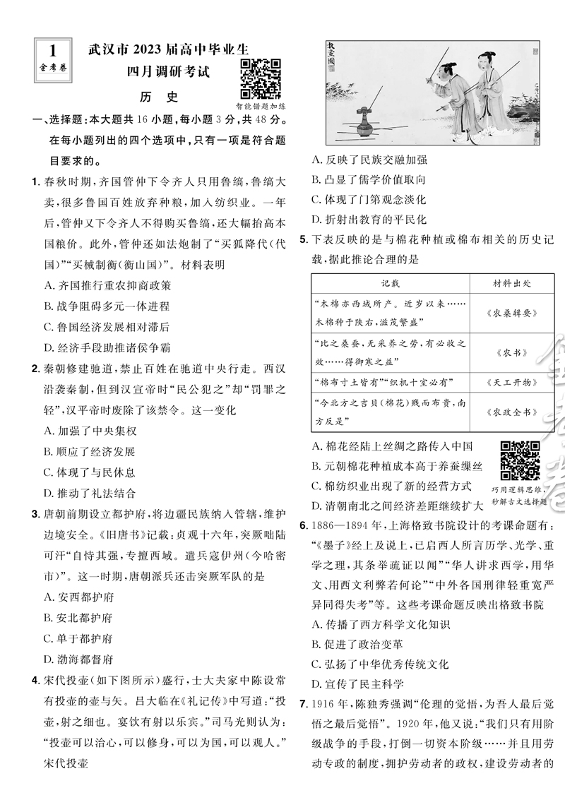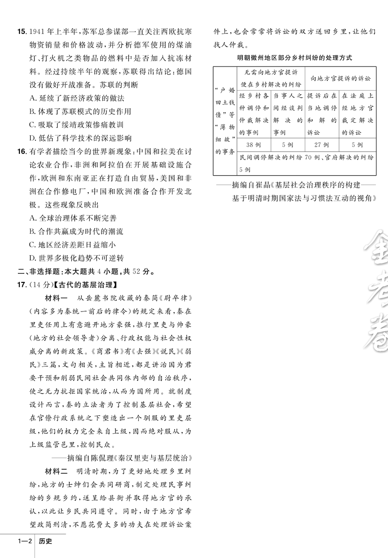 2023版天星教育 金考卷特快专递第8期 历史 新高考临考冲刺卷