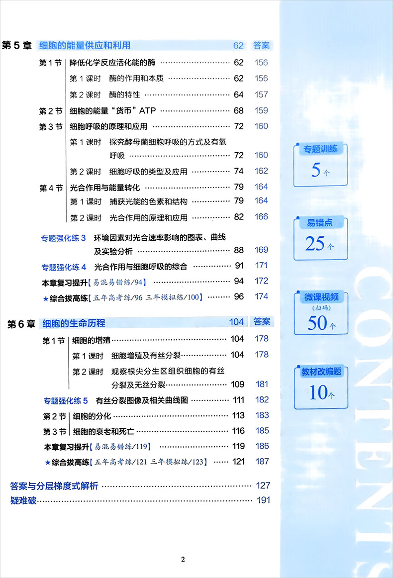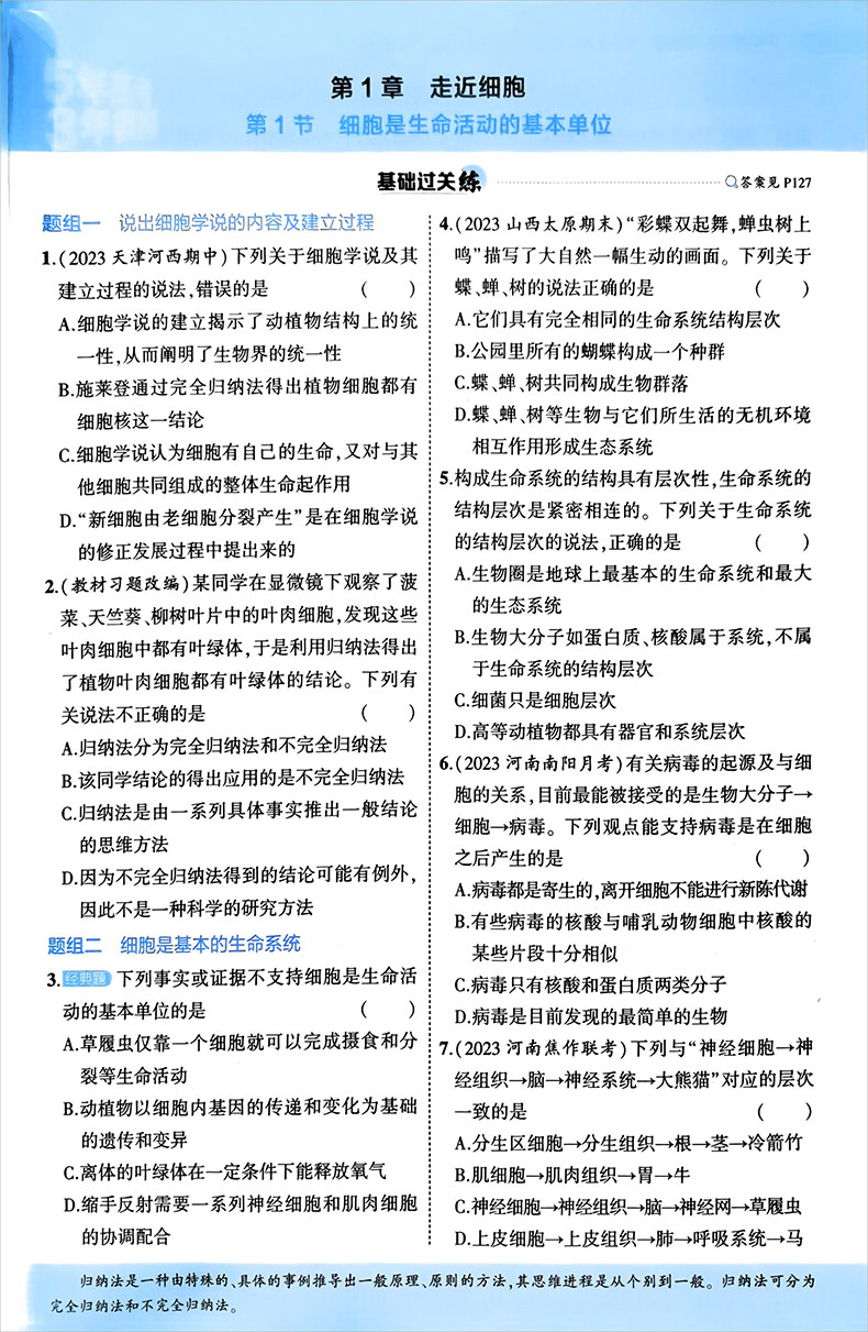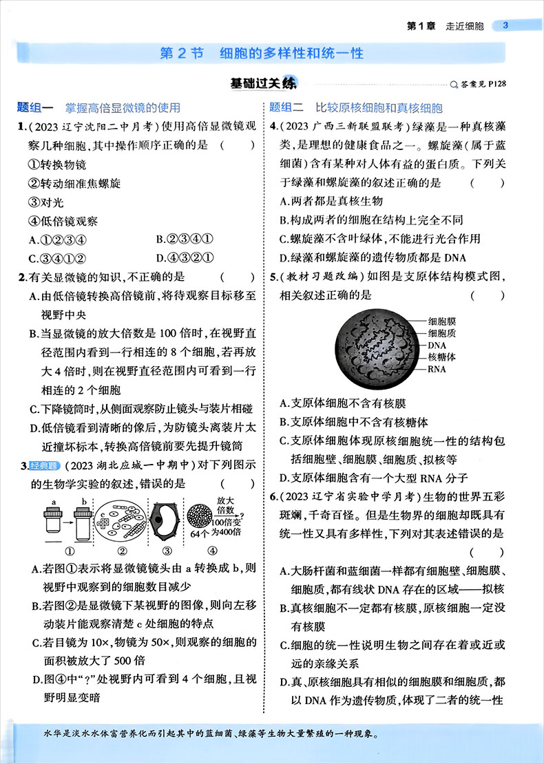 曲一线新教材2024版 五年高考三年模拟高中生物 必修1分子与细胞 人教版