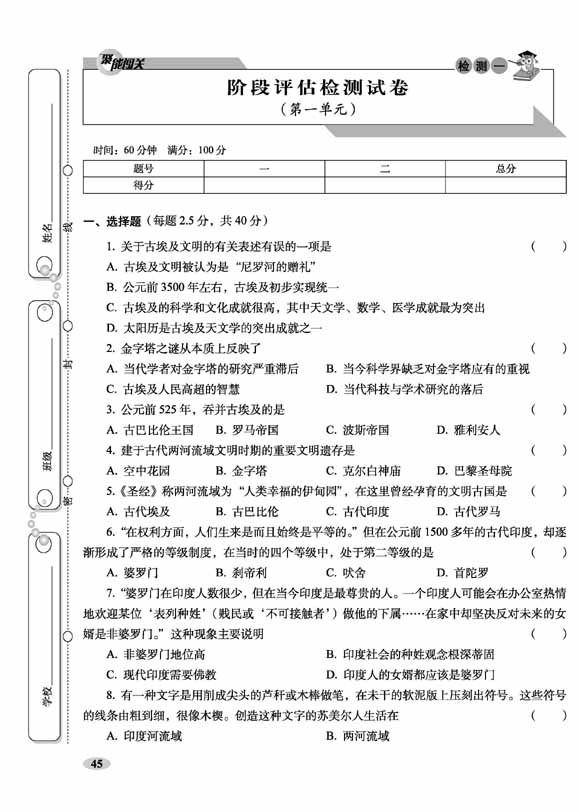 首页> 初中教辅> 九年级> 历史> 聚能闯关100分期末复习冲刺卷历史九年级上册23秋(人教版)