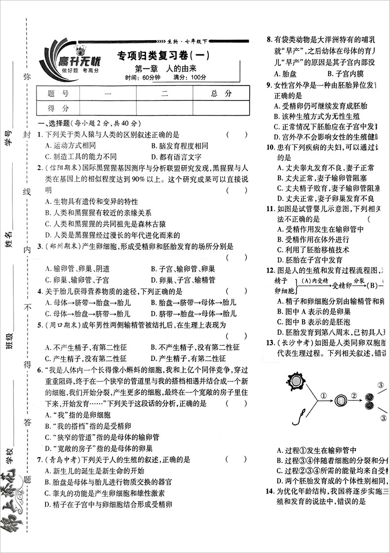 锦上添花期末大赢家 初中生物七年下 人教版