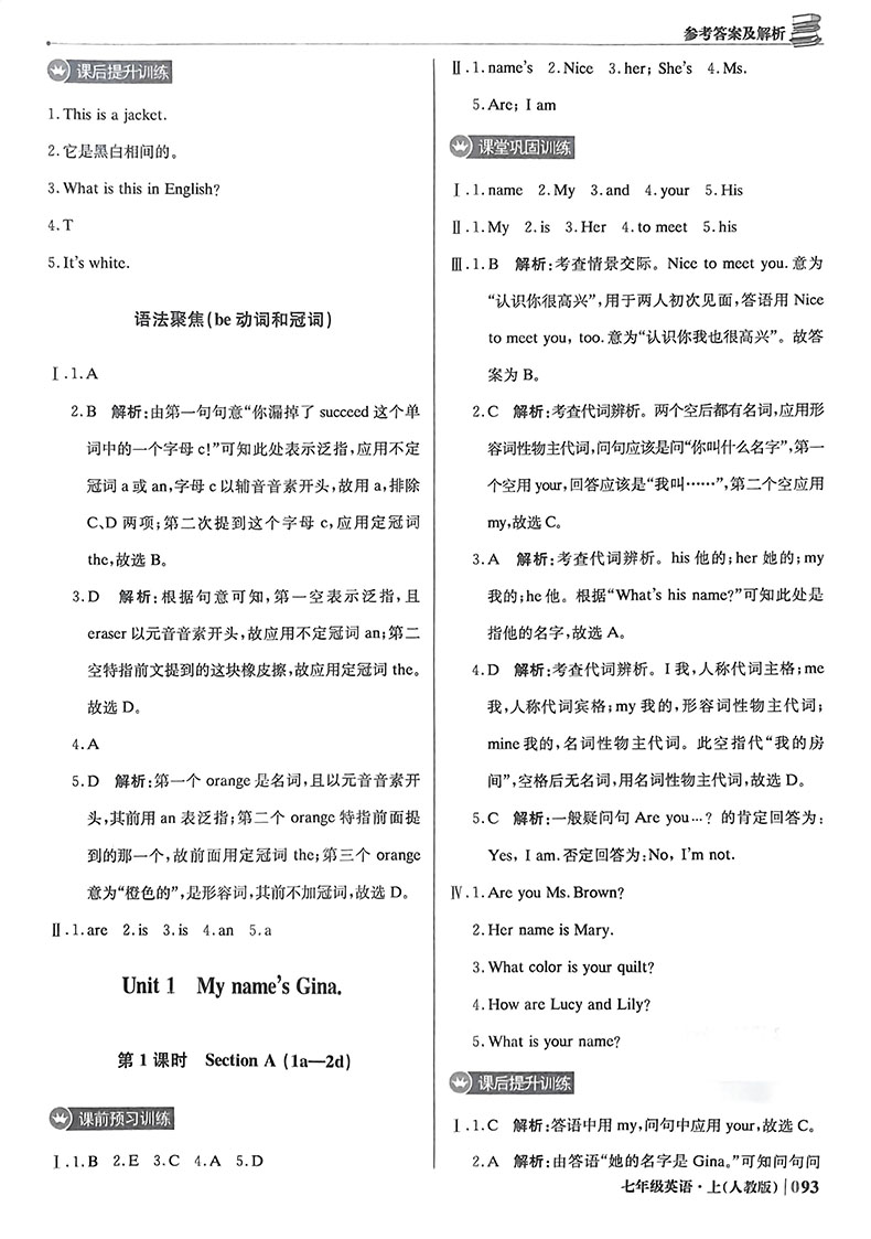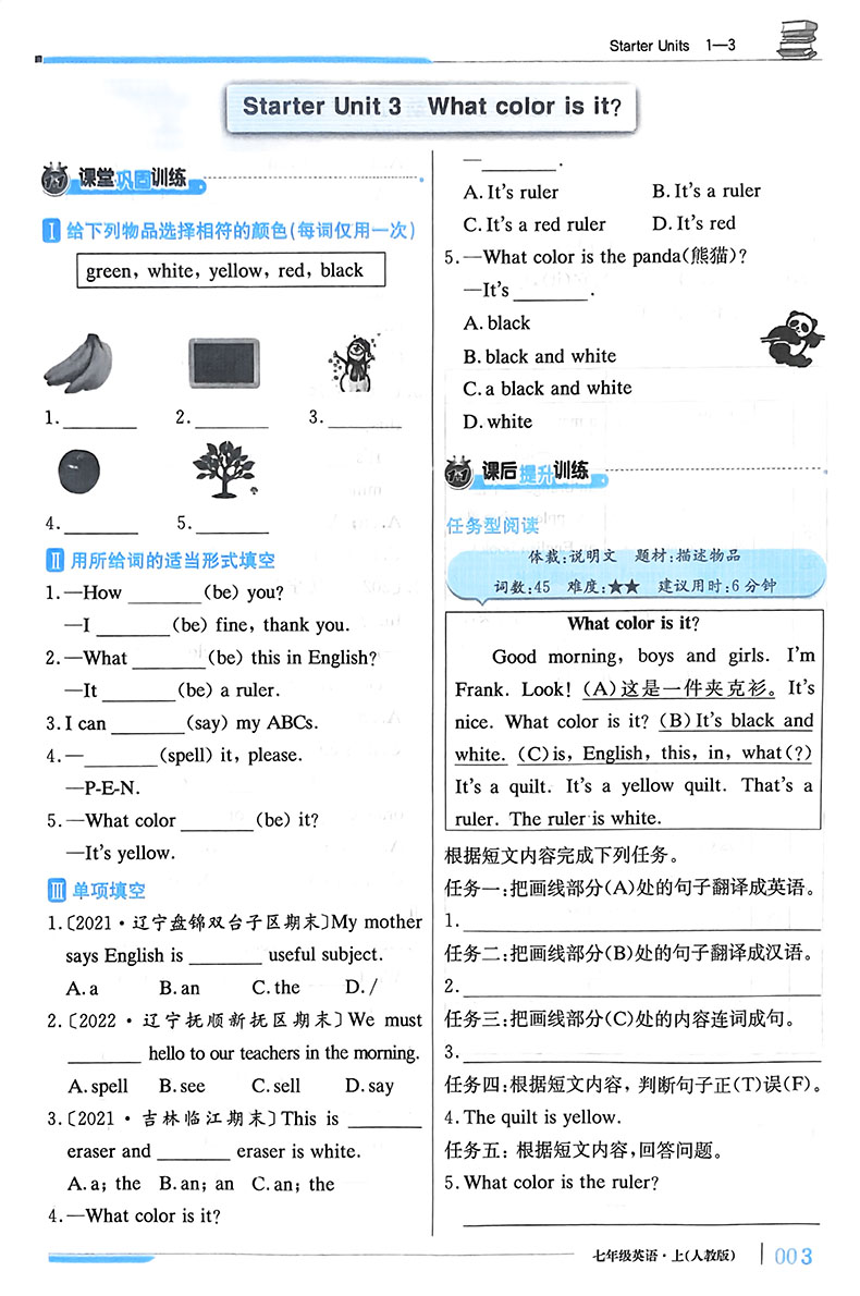 2024版轻巧夺冠优化训练七年级英语上 人教版