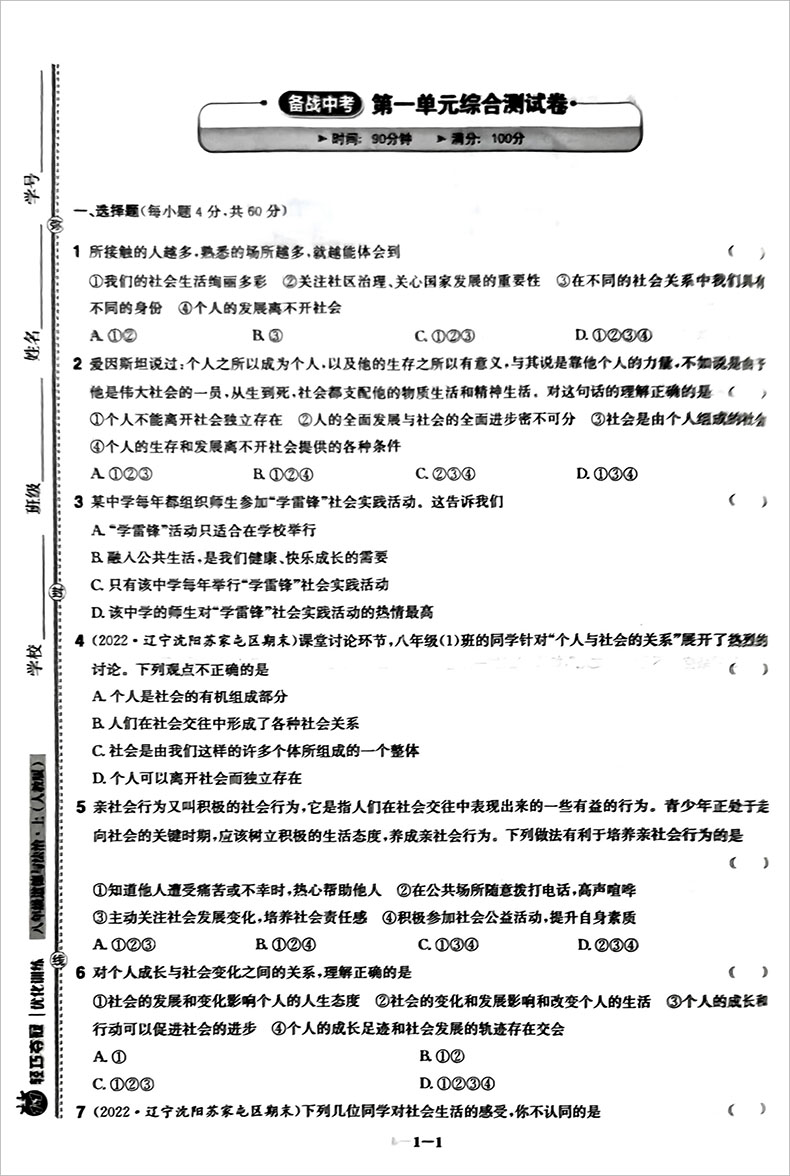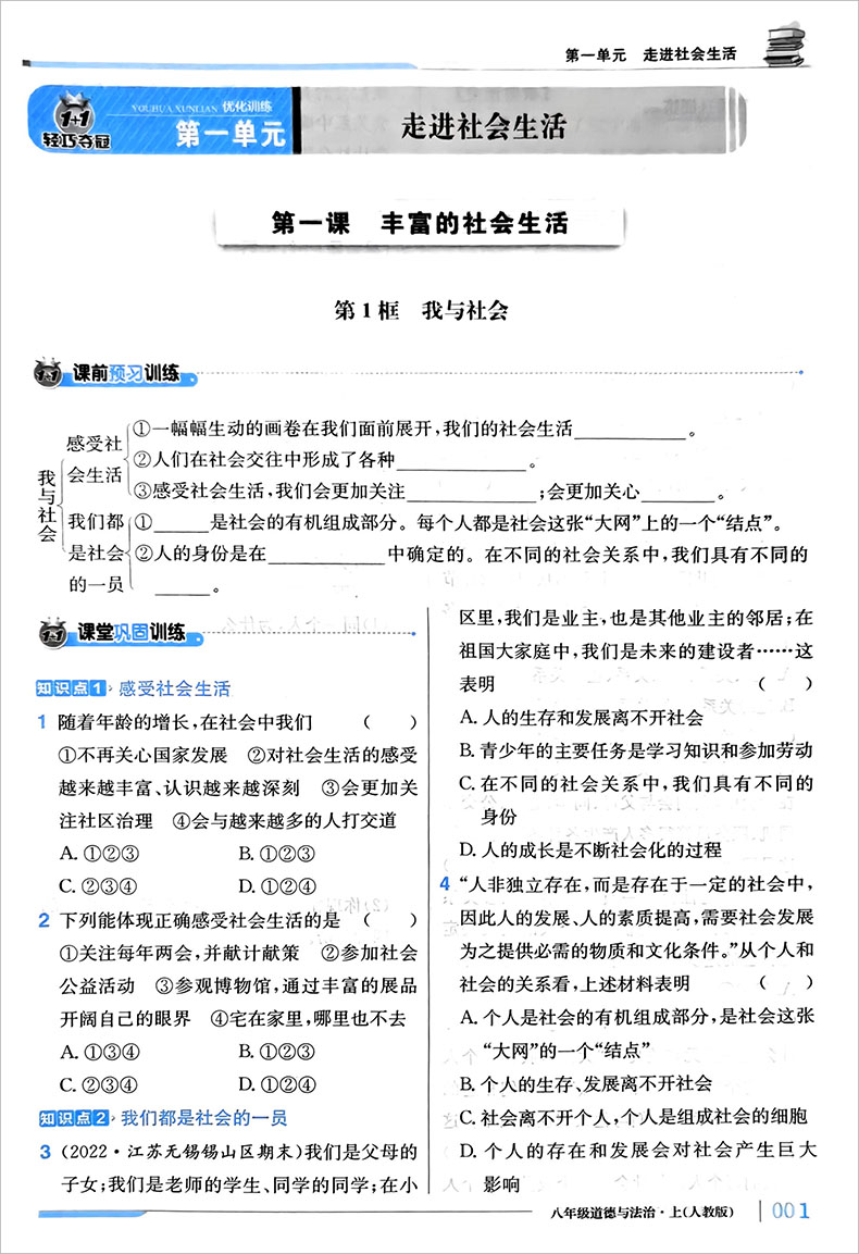2024版 轻巧夺冠优化训练 八年级道德与法治上 人教版(部编版)