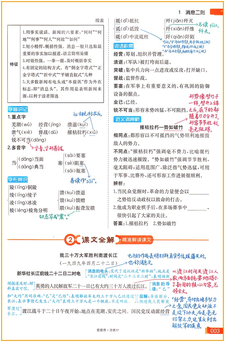 首页> 初中教辅> 八年级> 语文> 星推荐涂教材 初中八年级语文上册 人教版