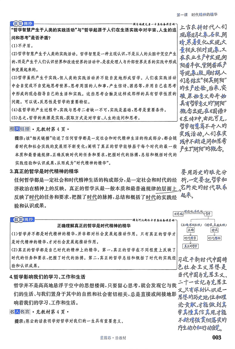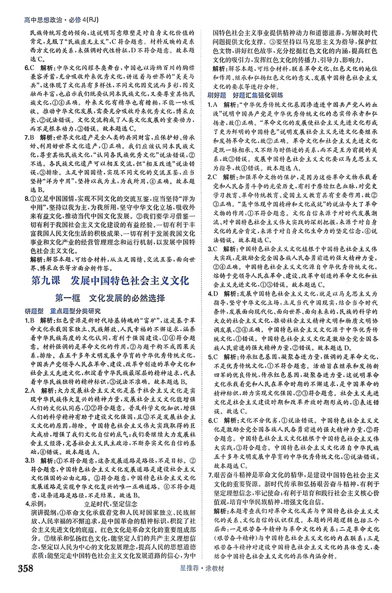 涂教材高中政治必修4哲学与文化 人教版 2024版