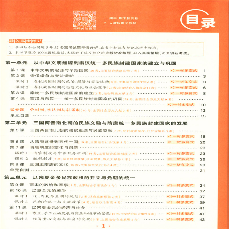 2024版 腾远原创高一基础题与高考考法历史必修上 人教版