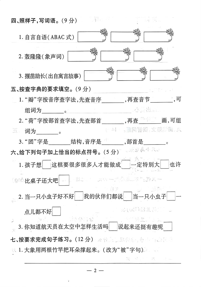 乐学名校闯关 期末名师名校100分 二年级语文下册 人教版