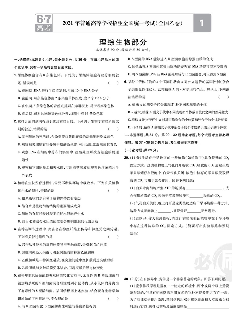 首页> 高中教辅> 高中通用> 生物> 高考必刷卷五年真题生物
