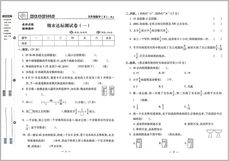 名师名校点金100分 期末冲刺 五年级数学下册 人教版