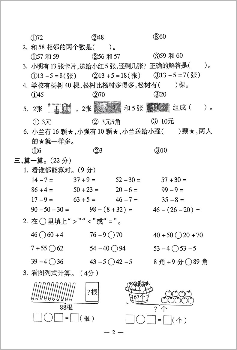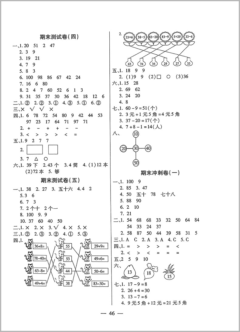 乐学名校闯关 期末名师名校100分 一年级数学下册 人教版