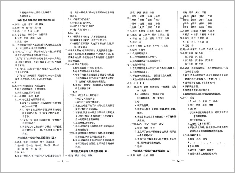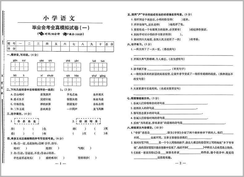 全能金卷100分 全真模拟试卷 小学毕业升学 六年级下语文