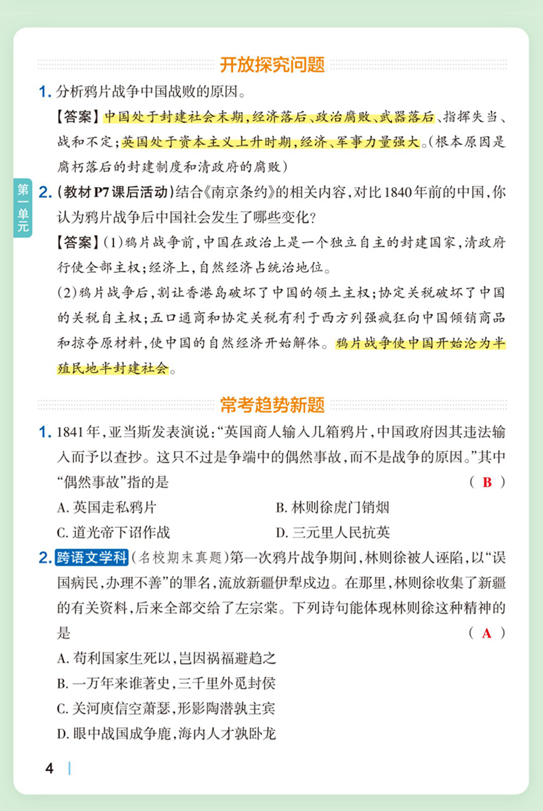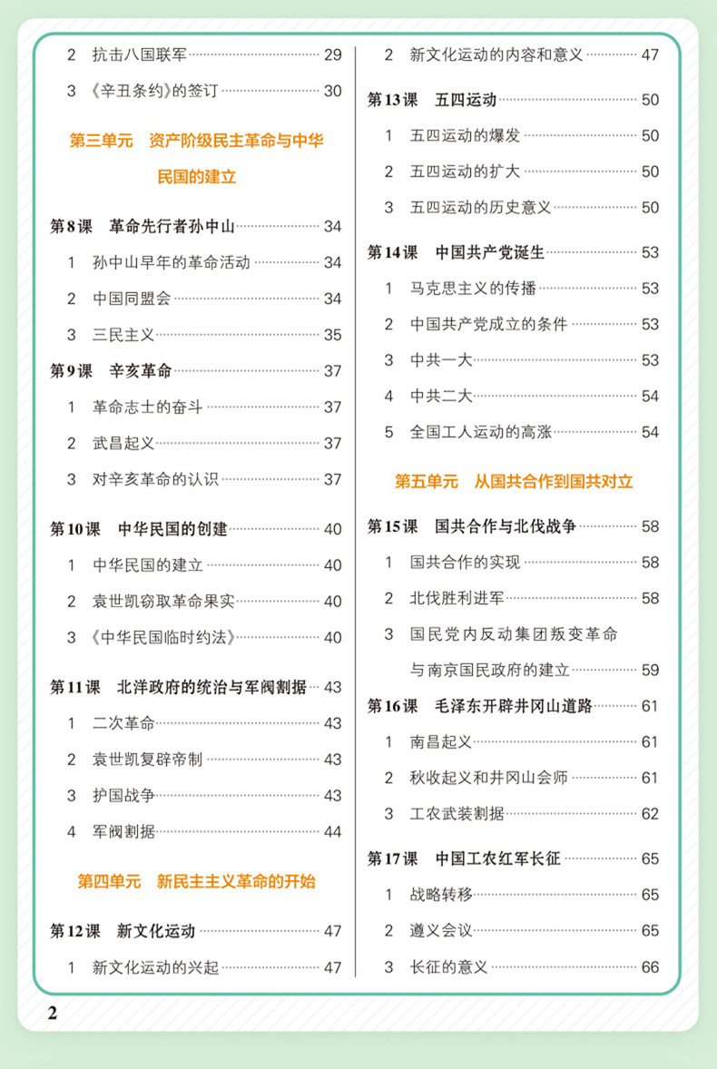 PASS绿卡 学霸期中期末速查速记 历史八年级上 人教版
