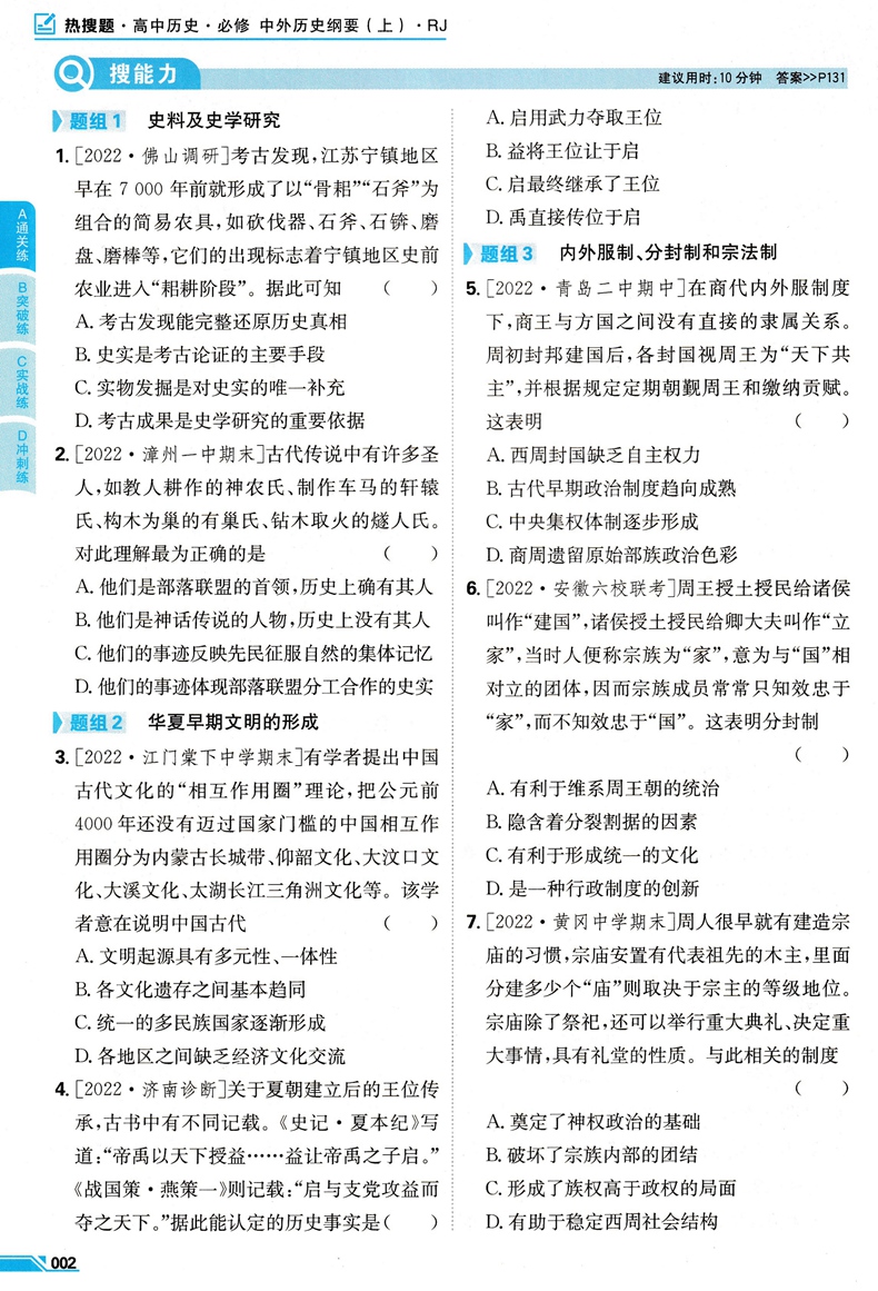 王后雄热搜题 高中历史必修中外历史纲要上 人教版