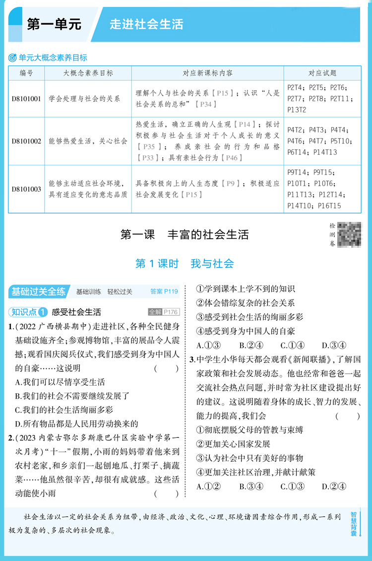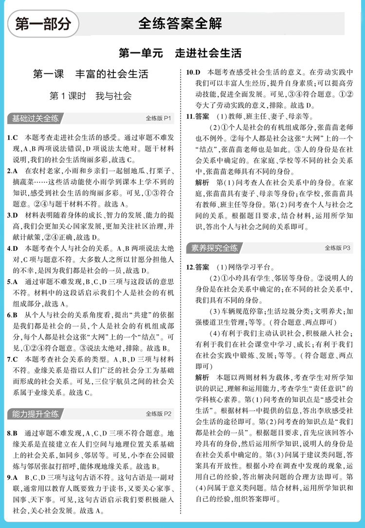 53初中道德与法治八年级上册 2024人教版 曲一线