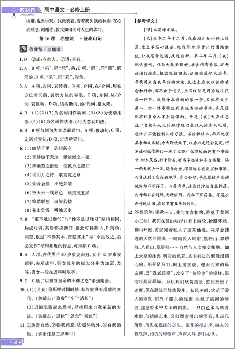 2024版 教材帮高中语文必修上册 人教版 天星教育