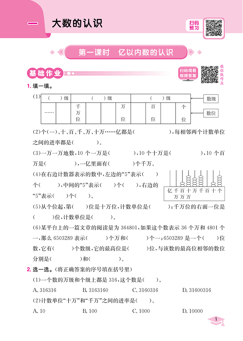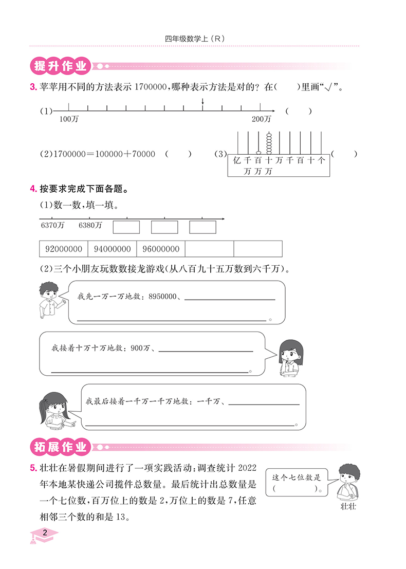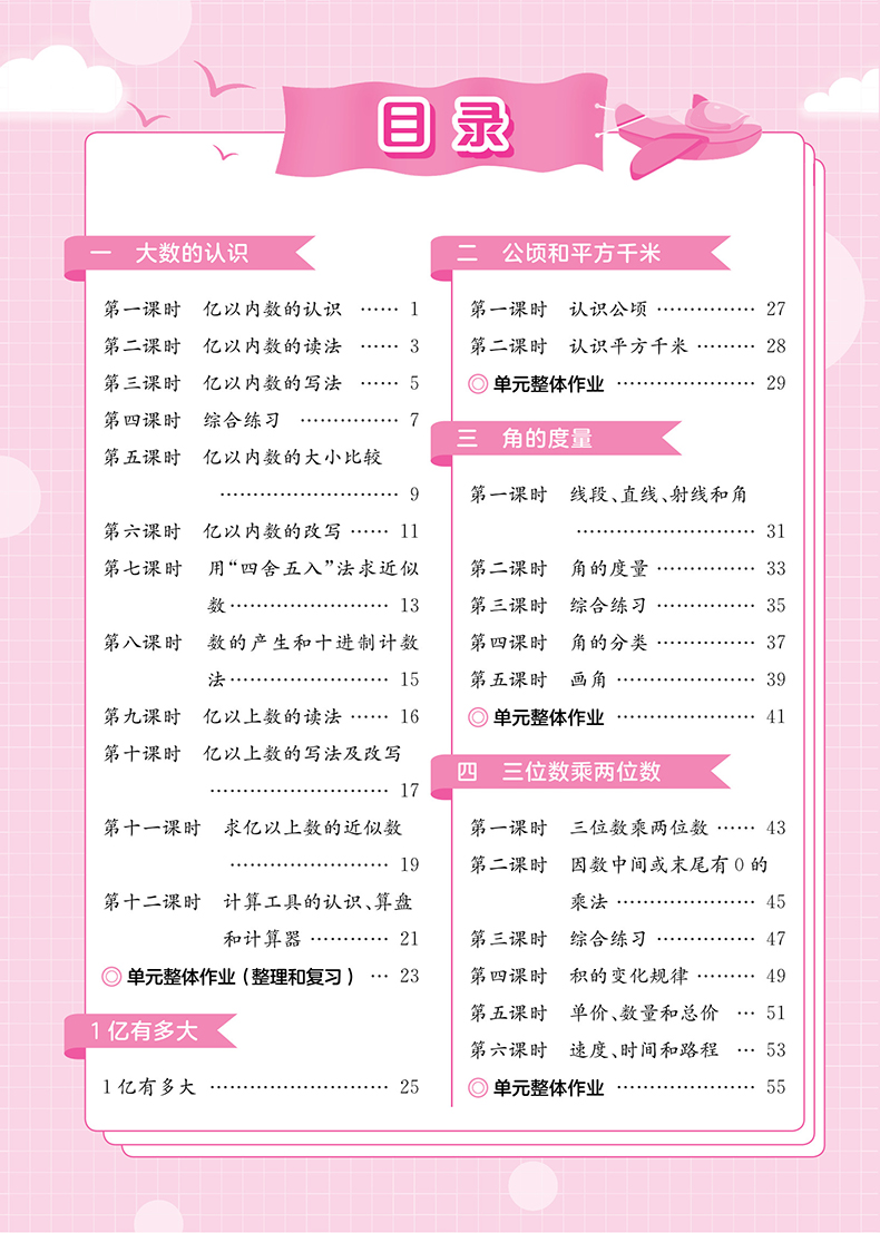 黄冈小状元作业本四年级数学上 人教版