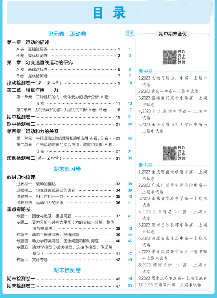 2024版53高中全优卷 物理必修第一册 人教版 曲一线