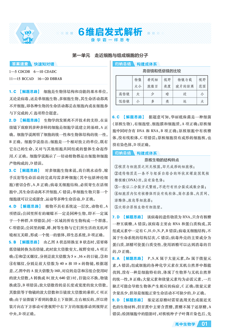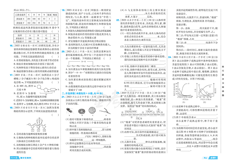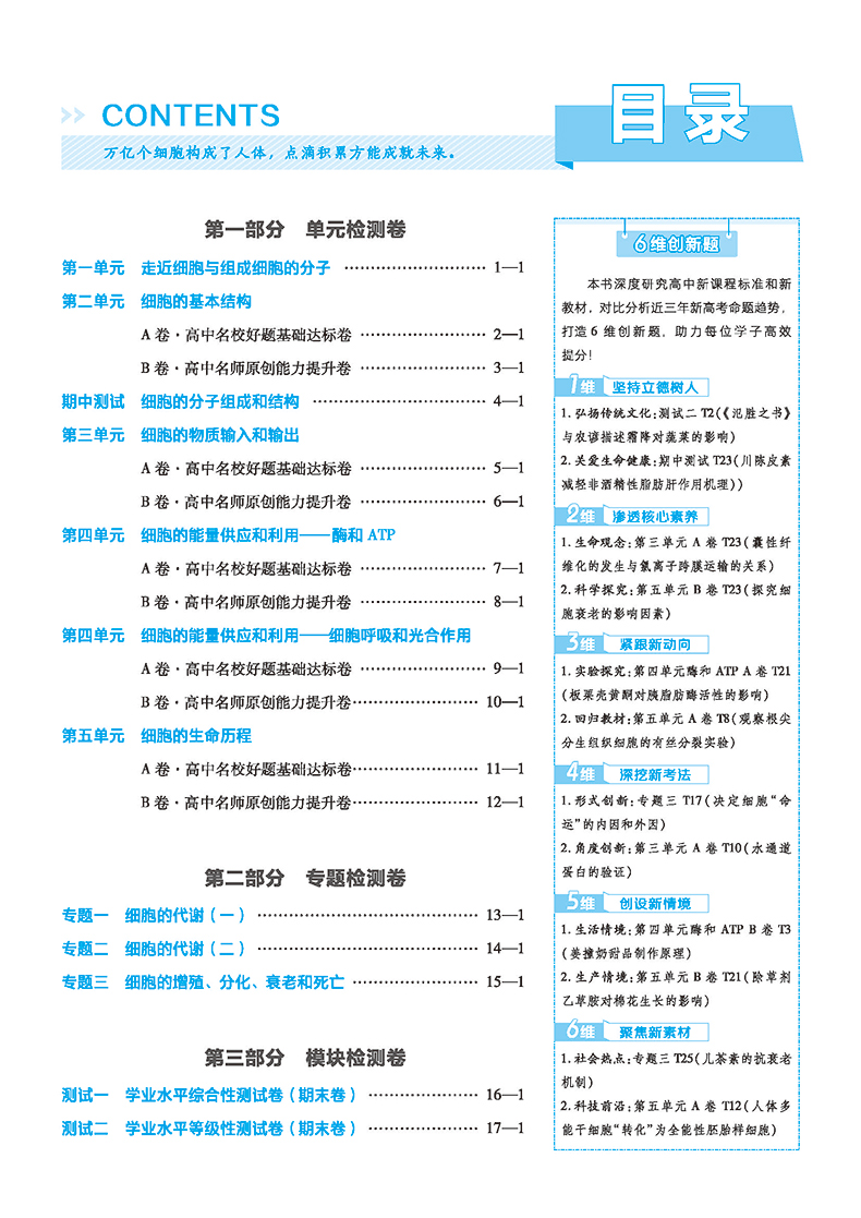 2024版单元双测卷高中生物学必修1人教版 金星教育