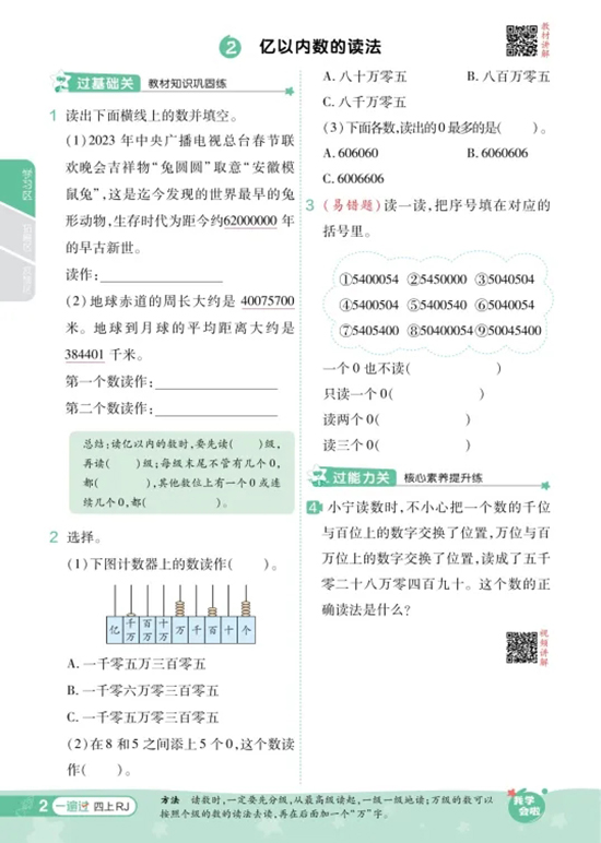 2024小学一遍过四年级上册数学 人教版 天星教育