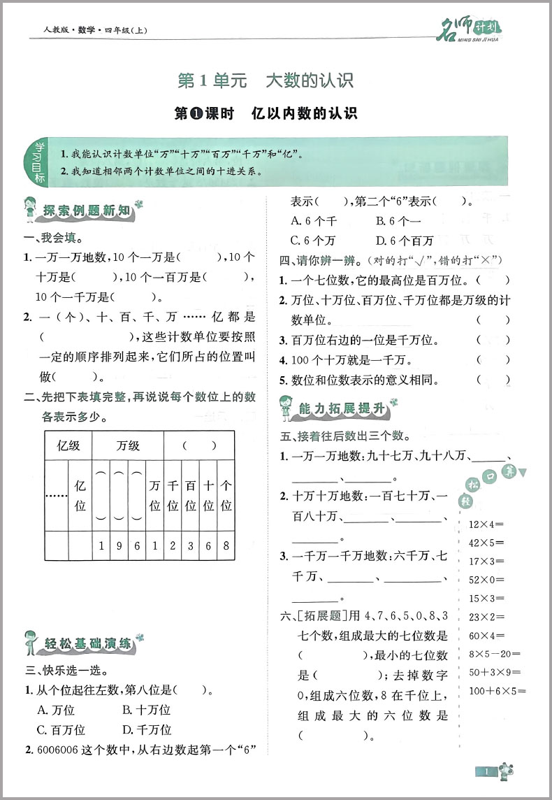首页> 小学教辅> 四年级> 数学> 名师计划高效课堂四年级数学上册人教版