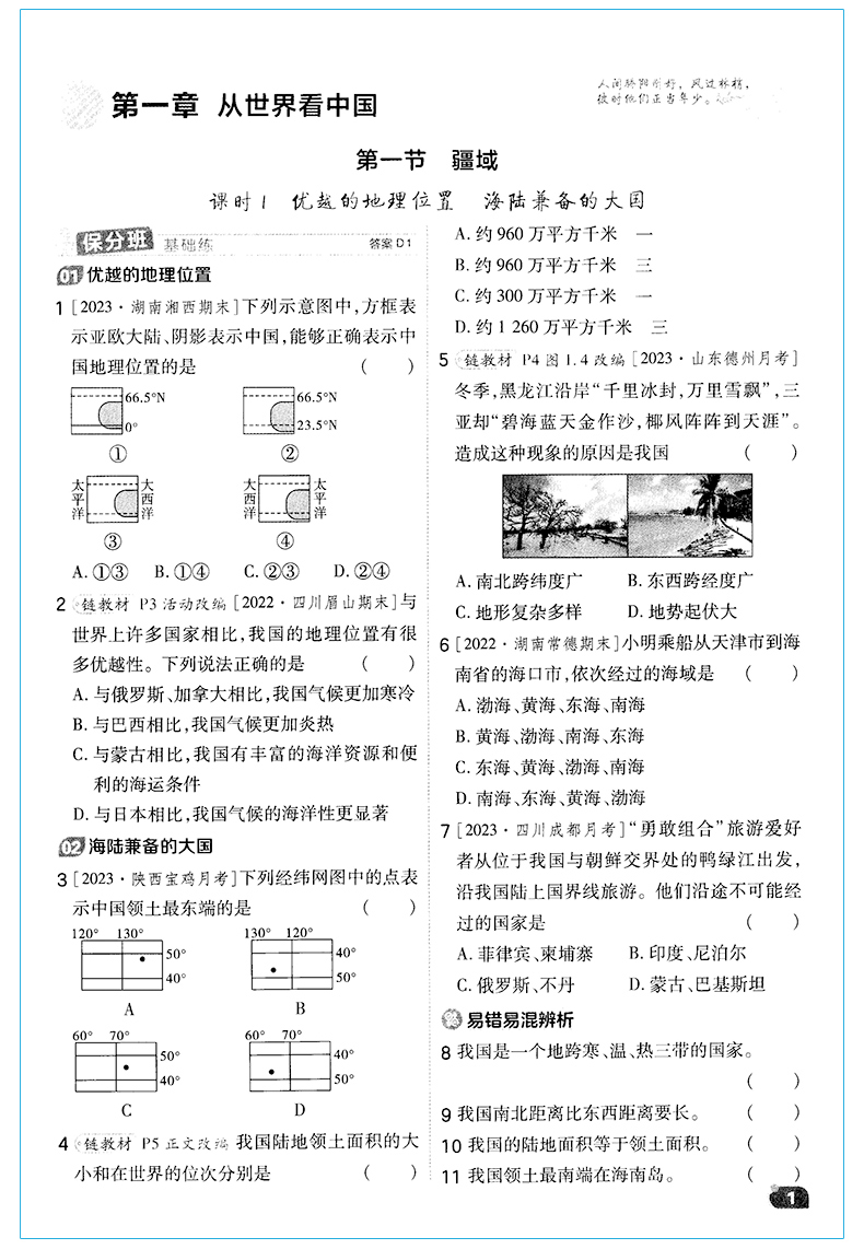 首页> 初中教辅> 八年级> 地理> 少年班 初中地理八年级上册 人教版