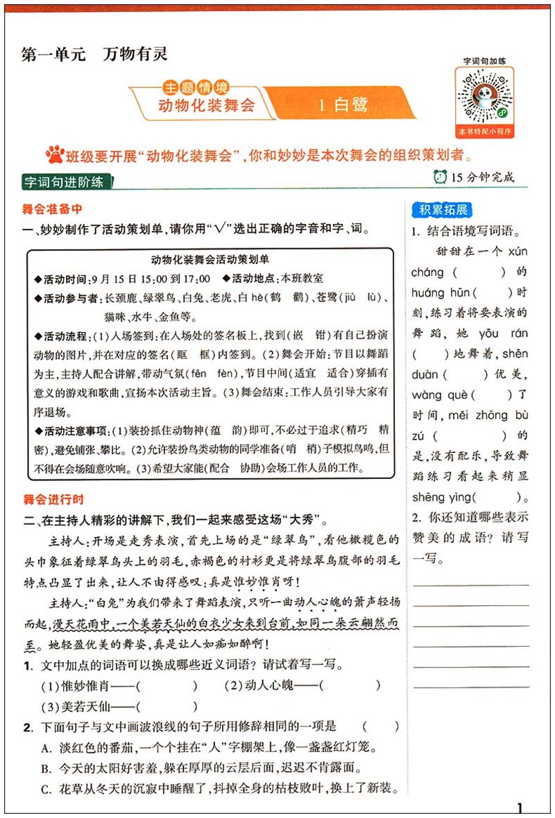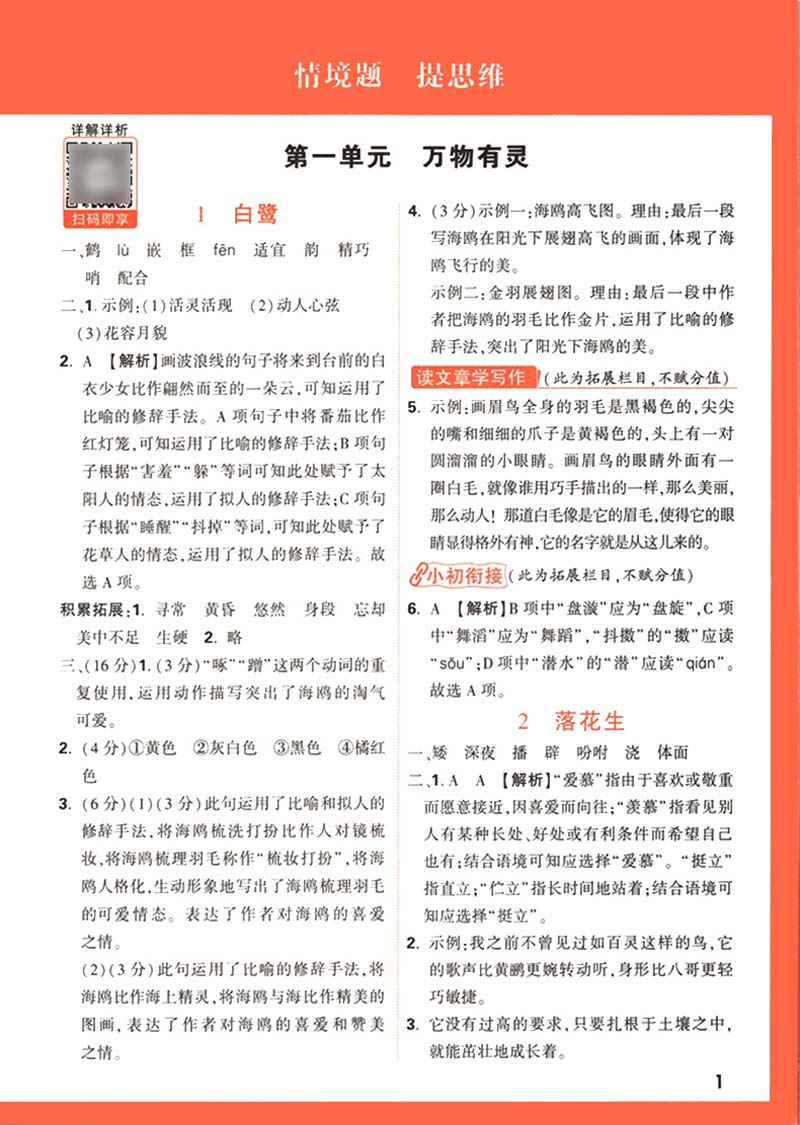 首页> 小学教辅> 五年级> 语文> 2024版万为原创小白鸥情境题提思维语文五年级上册 人教版