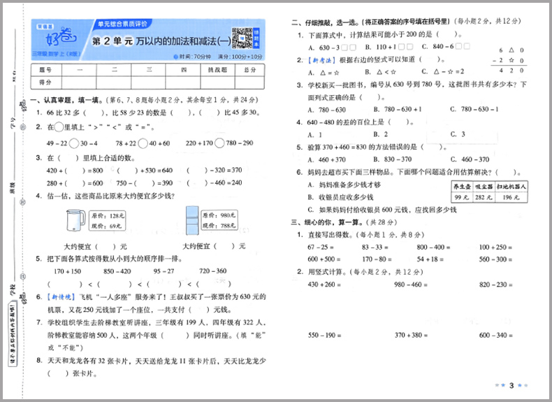 首页> 小学教辅> 三年级> 数学> 荣德基好卷三年级数学上册 人教版
