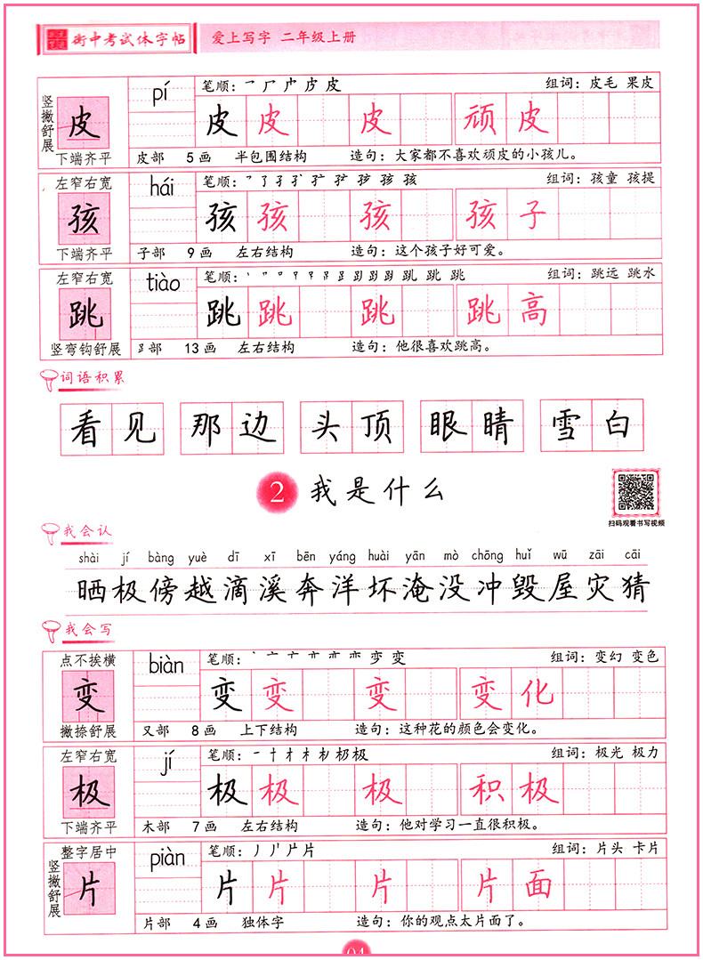 2024版华版文化 衡中考试体字帖 爱上写字二年级上册人教版(正楷)