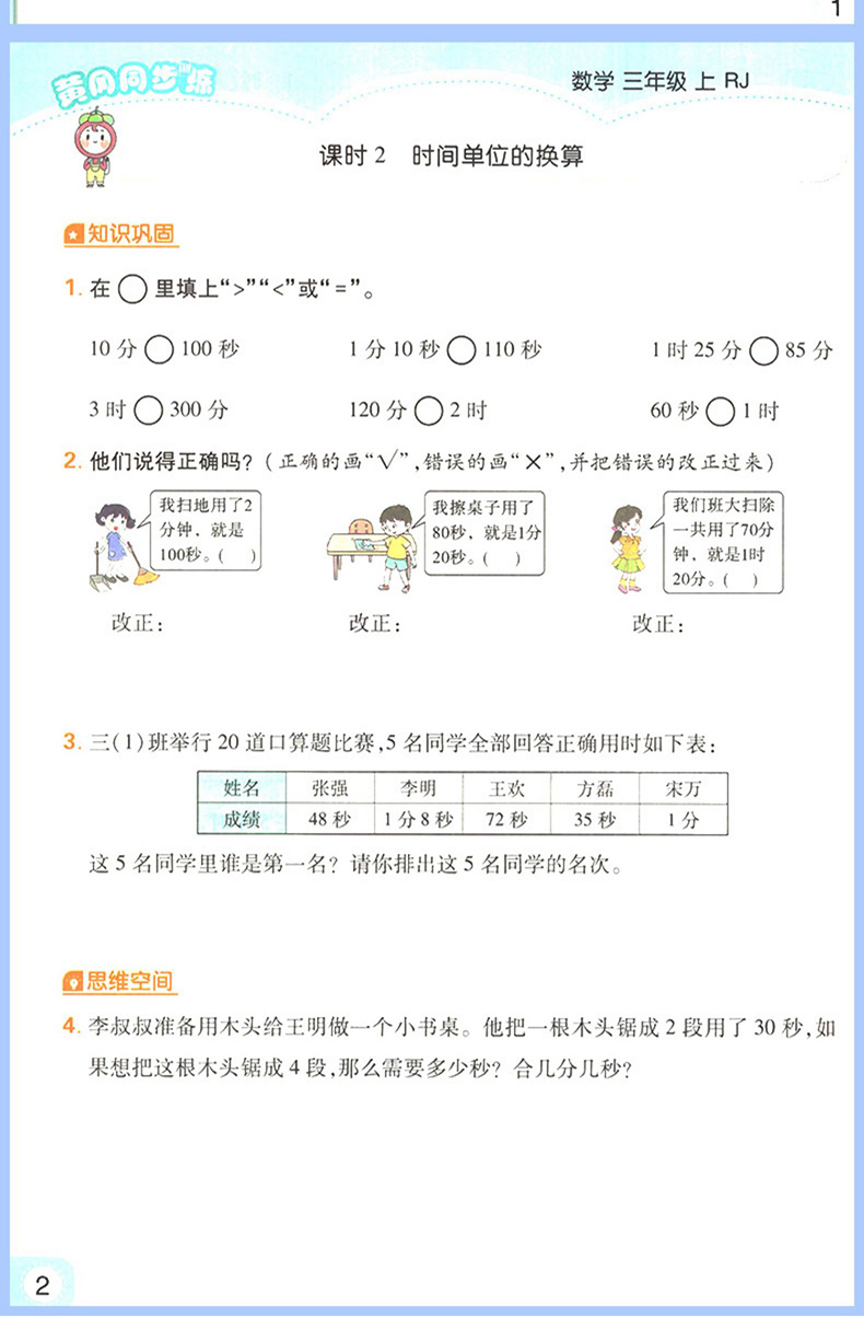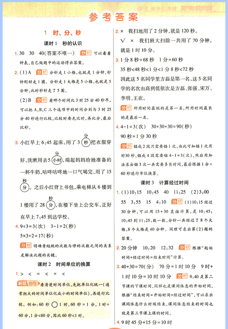 黄冈同步练一日一练三年级数学上册 人教版 万向思维
