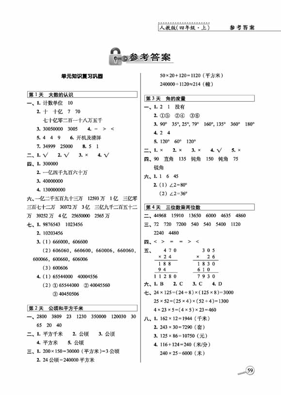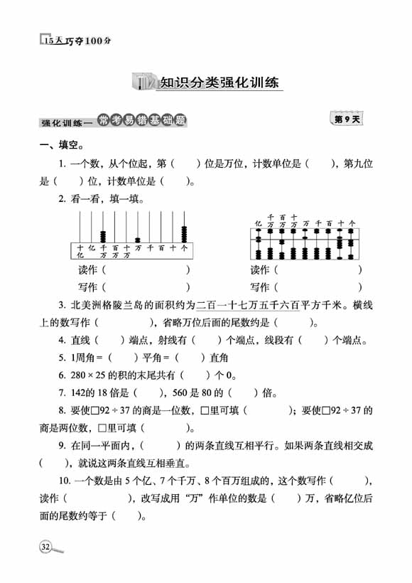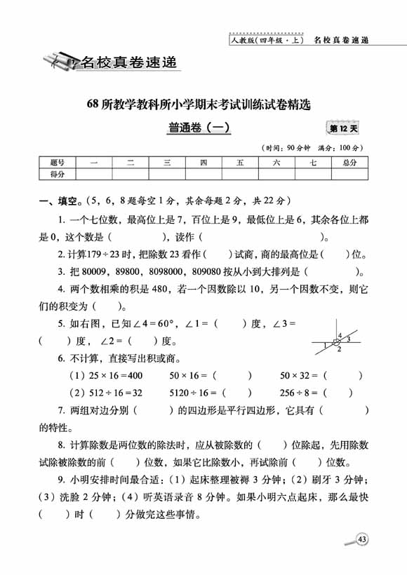 2023秋15天巧夺100分数学四年级上册人教版