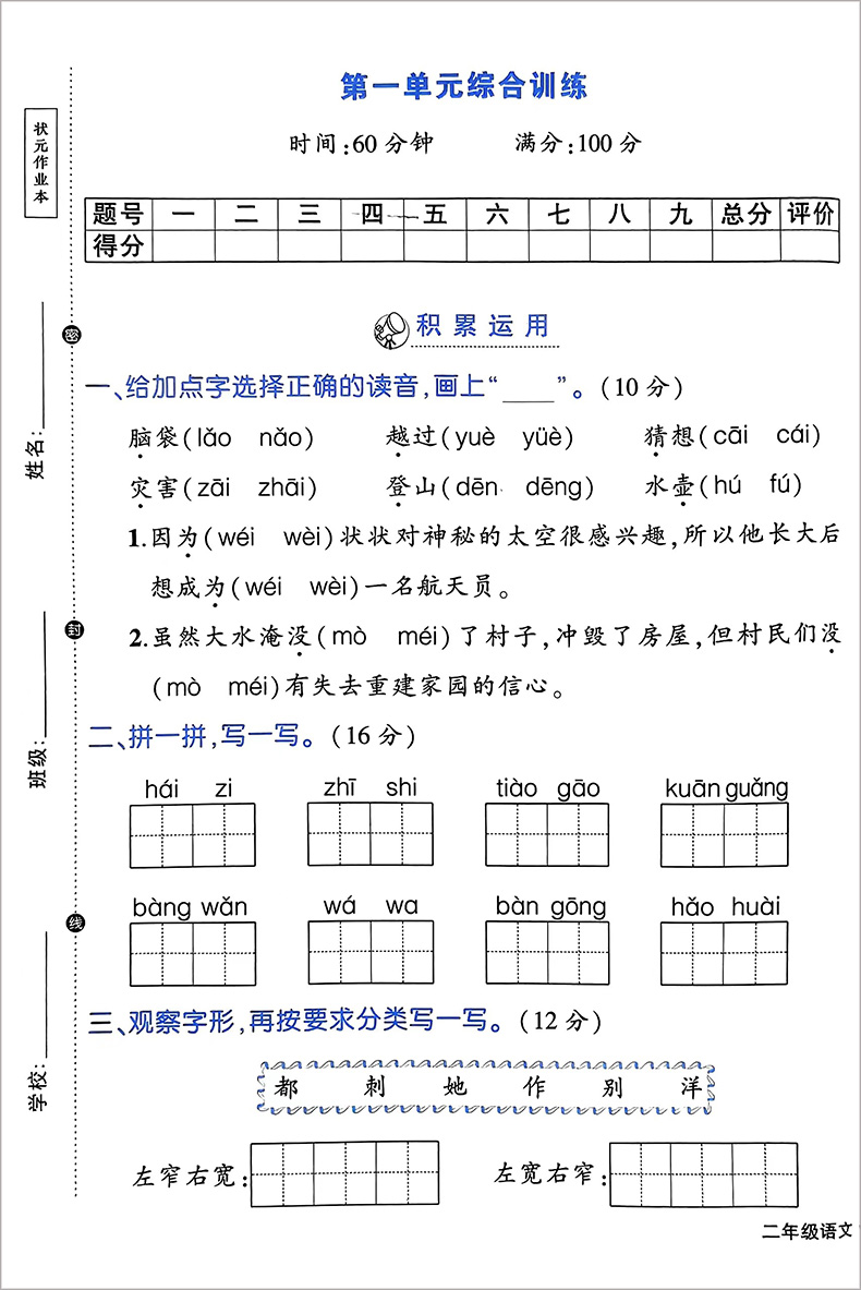 状元作业本 二年级语文上册 人教版