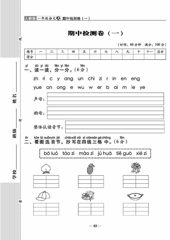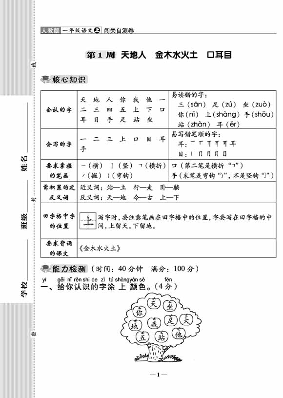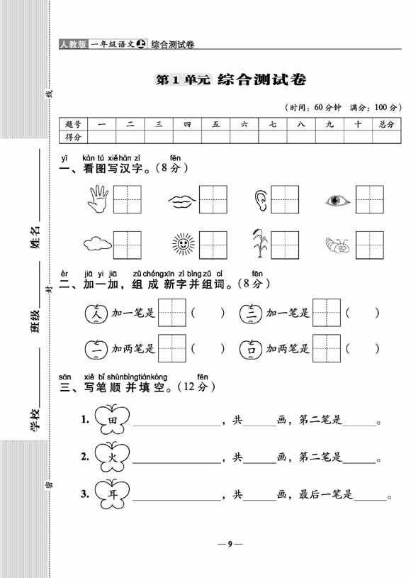 A+全程练考卷语文一年级 上册23秋人教版