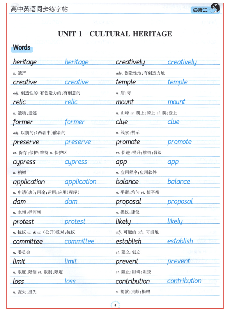笔墨先锋 高中英语同步练字帖 必修二