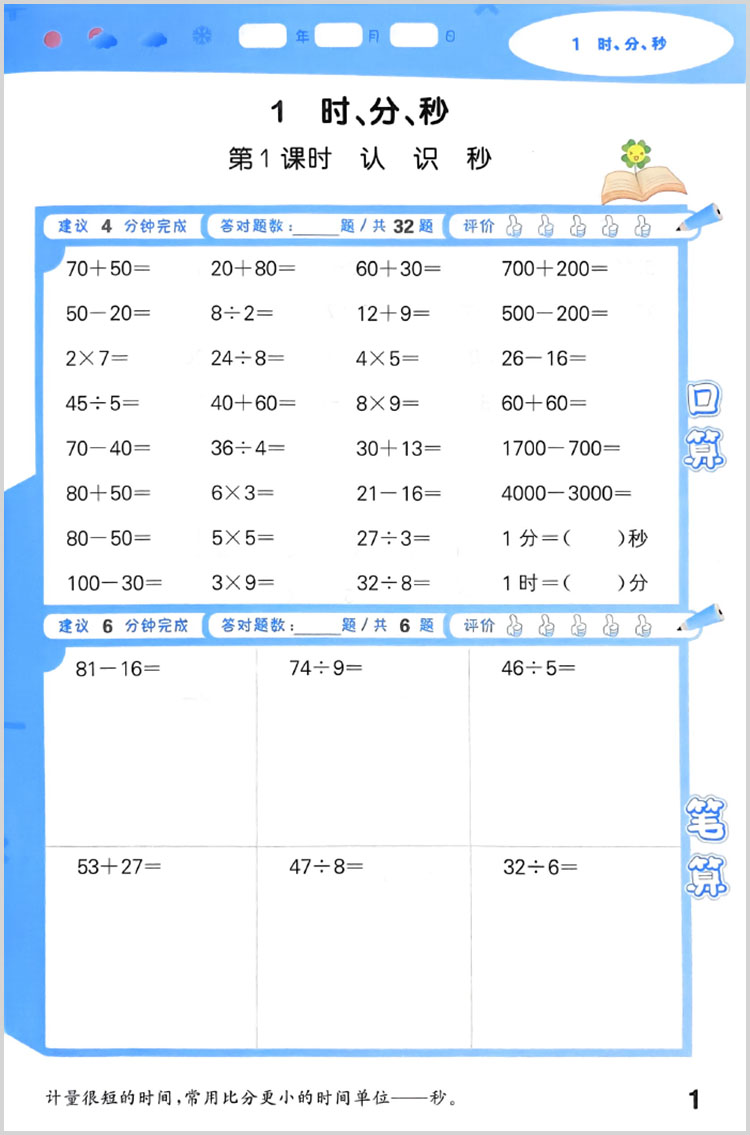 首页> 小学教辅> 三年级> 数学> 2023秋小学口算大通关 数学三年级上册 人教版