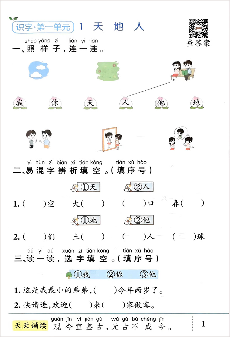Pass绿卡图书 小学学霸天天默写 一年级上册人教版