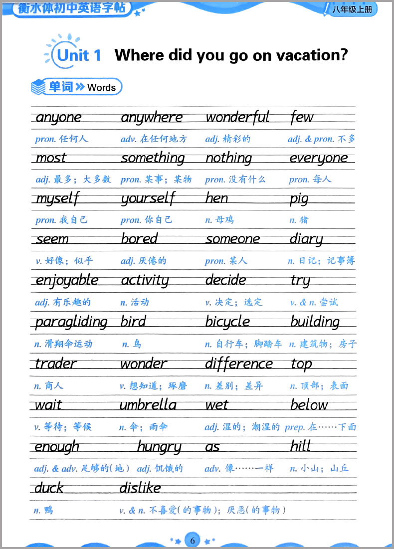首页> 初中教辅> 八年级> 英语> 墨点字帖 衡水体初中英语字帖八年级上册 人教新目标