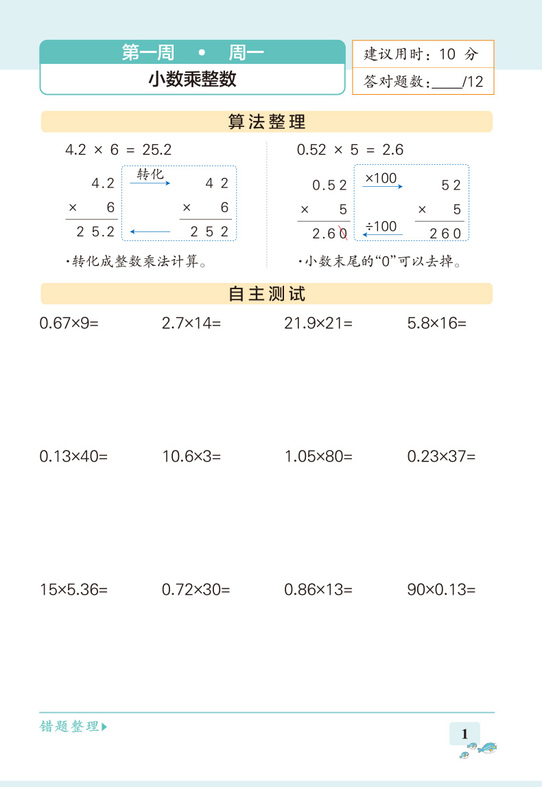 首页> 小学教辅> 五年级> 数学> Pass绿卡图书 小学学霸天天计算 五年级上册人教版