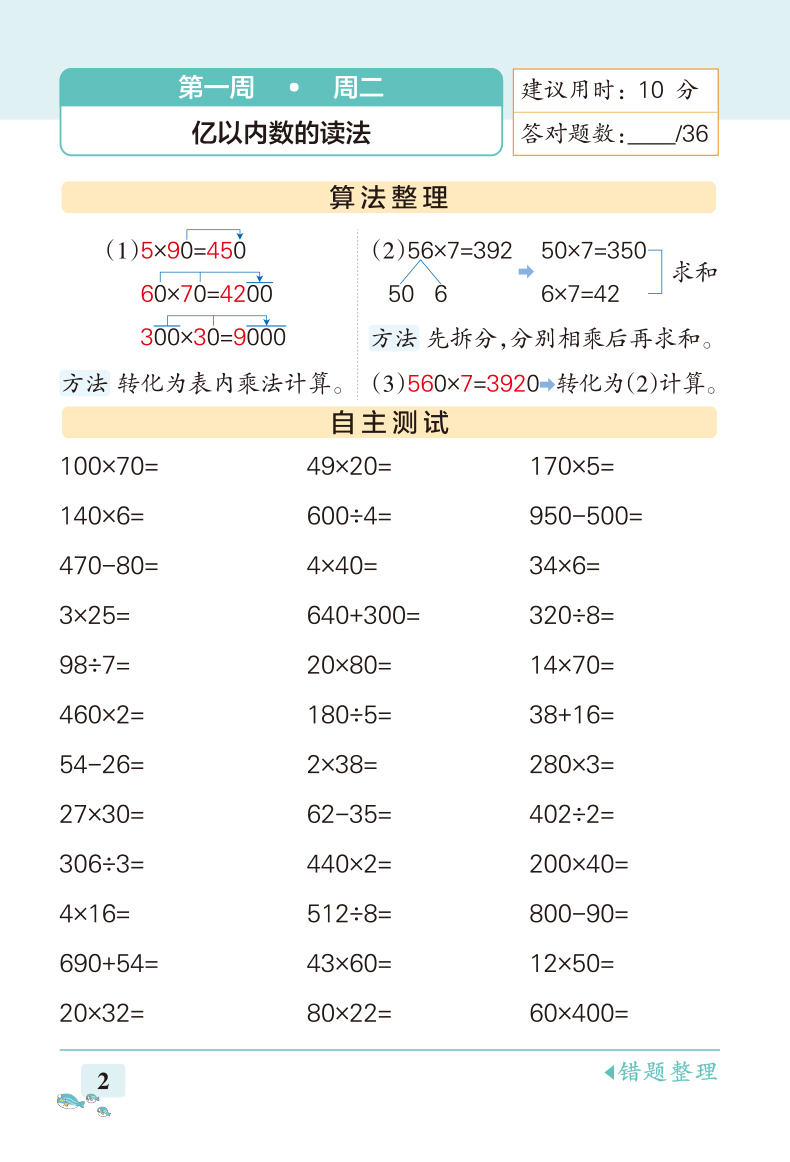 首页> 小学教辅> 四年级> 数学> Pass绿卡图书 小学学霸天天计算 四年级上册人教版