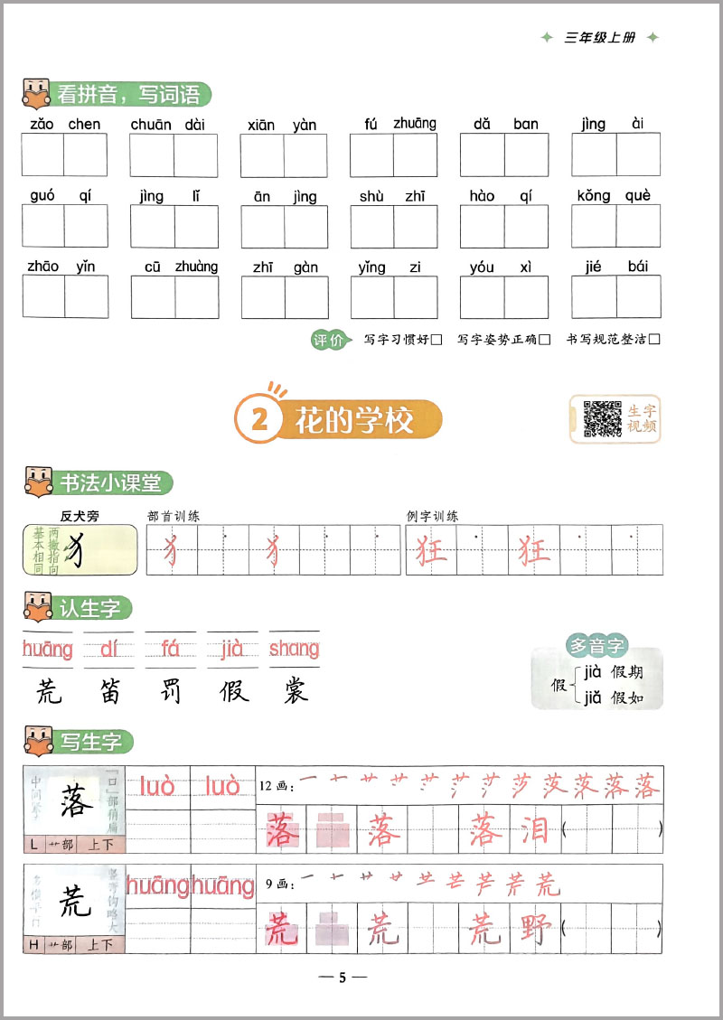 墨点字帖规范字同步书写能手三年级上册 正楷