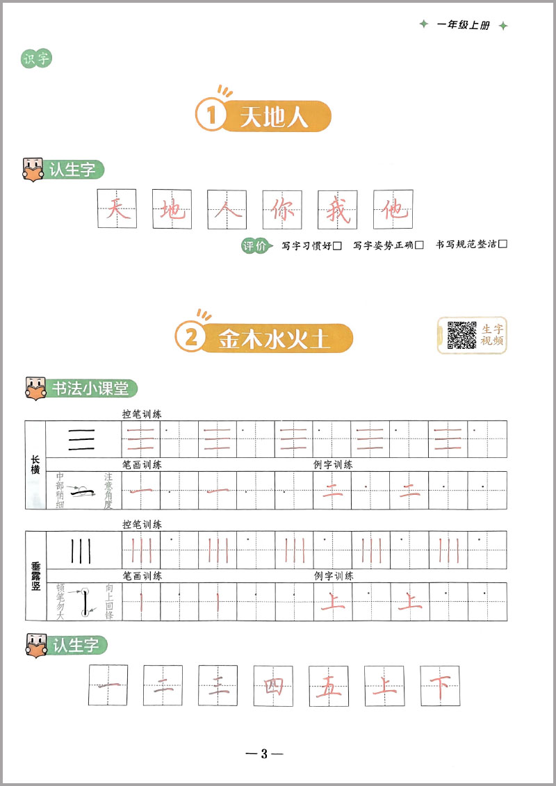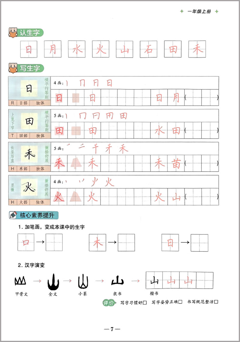 墨点字帖规范字同步书写能手一年级上册 正楷