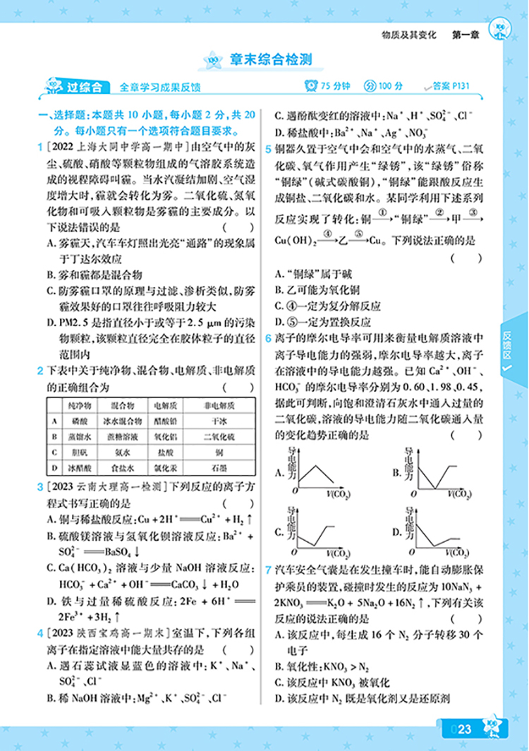 2024版天星教育一遍过 高中化学必修第一册 人教版