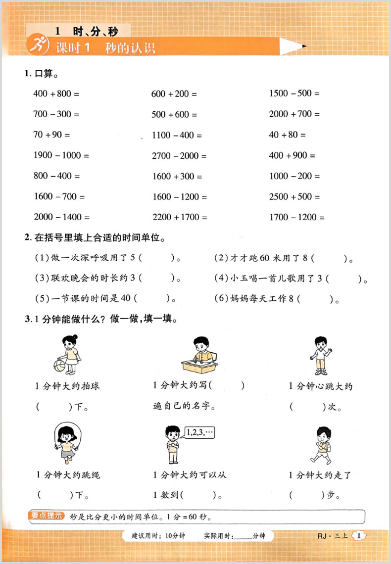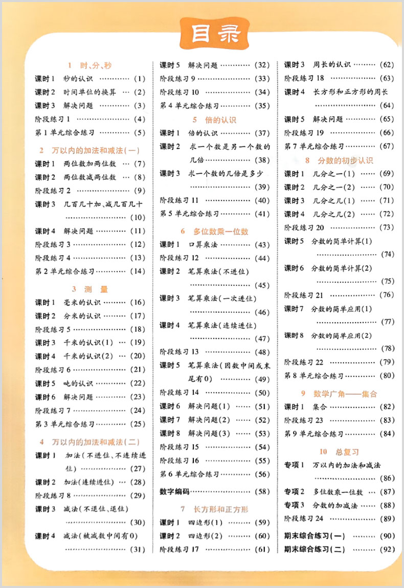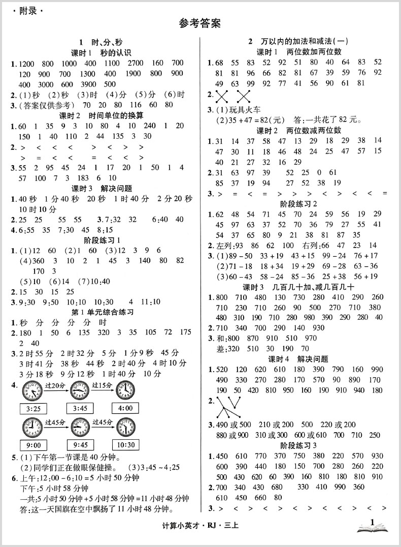 世纪英才计算小英才 计算能力专练 三年级上册数学 人教版
