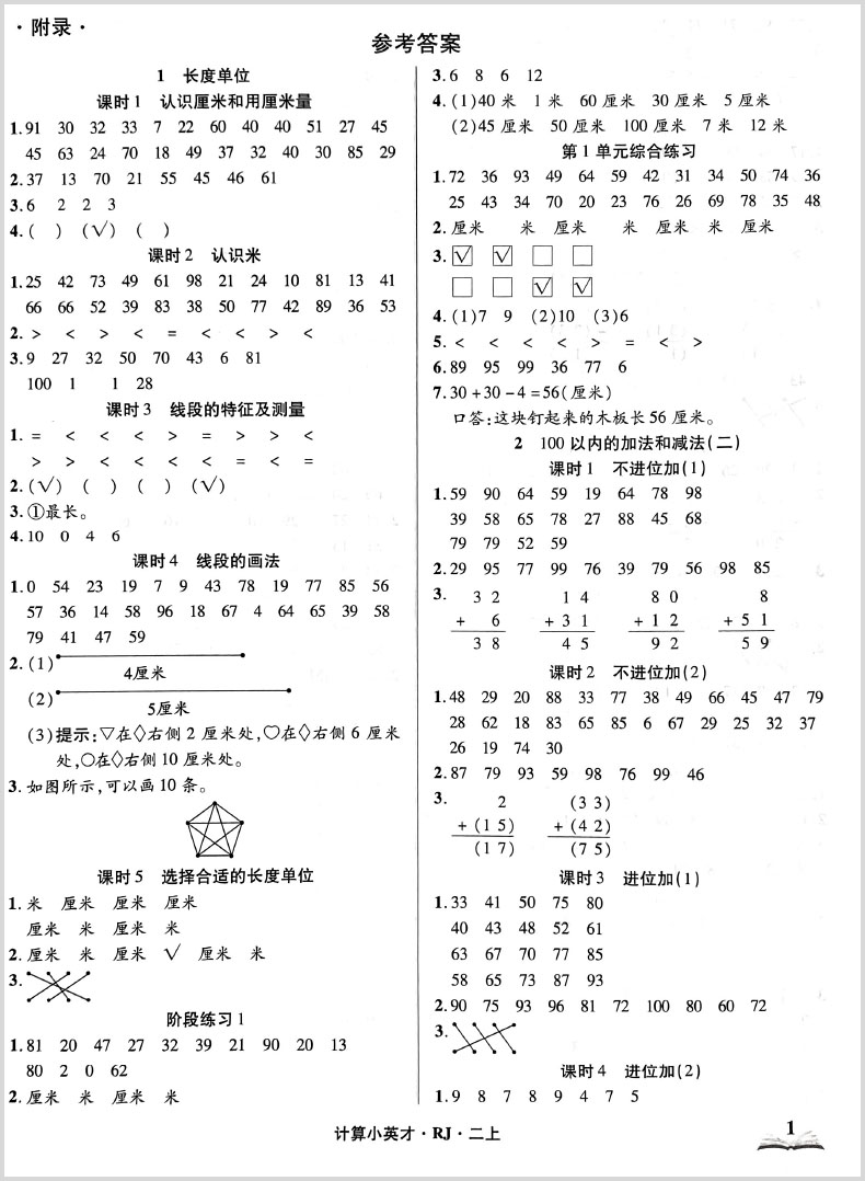 世纪英才计算小英才 计算能力专练 二年级上册数学 人教版