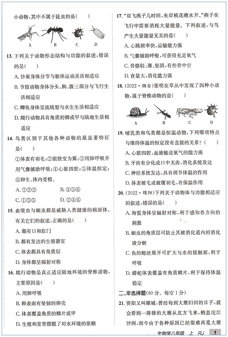 2024版非常海淀单元测试AB卷 八年级上册生物 人教版