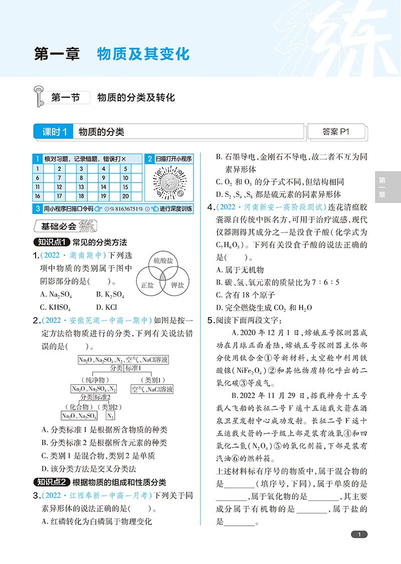 2024版练到位高中教材同步练习 高中化学1必修第一册 RJHX版小熊图书