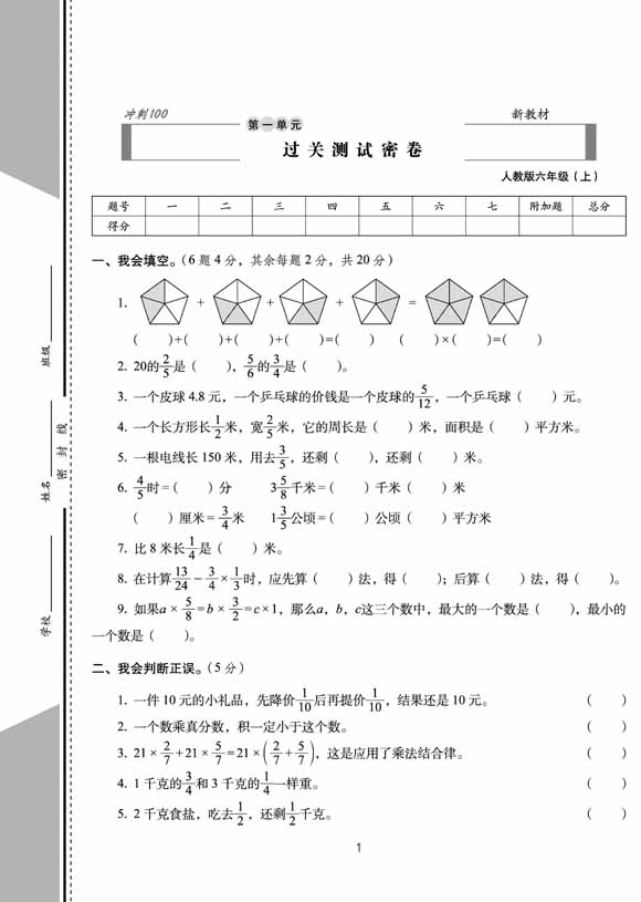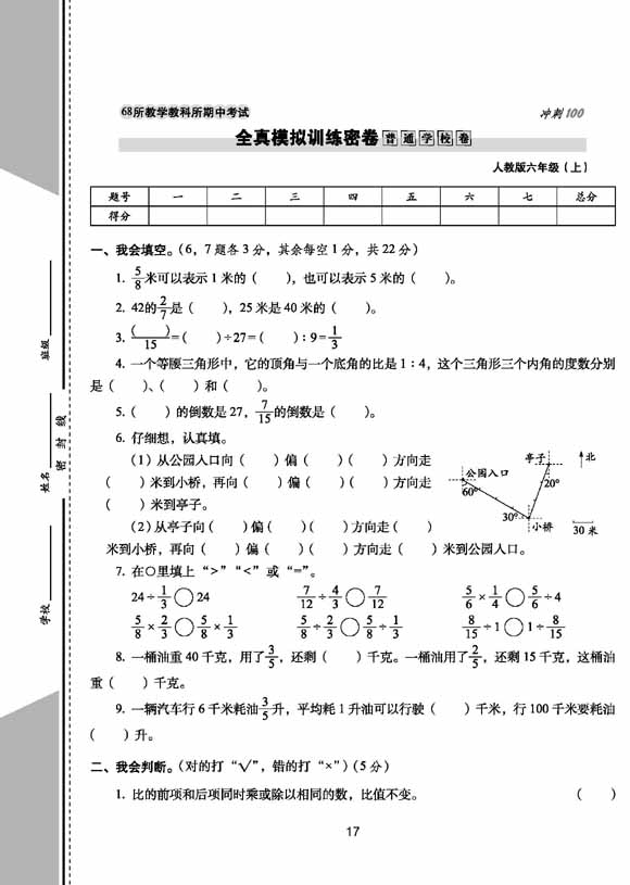 2023秋 期末冲刺100分六年级上册数学 人教版