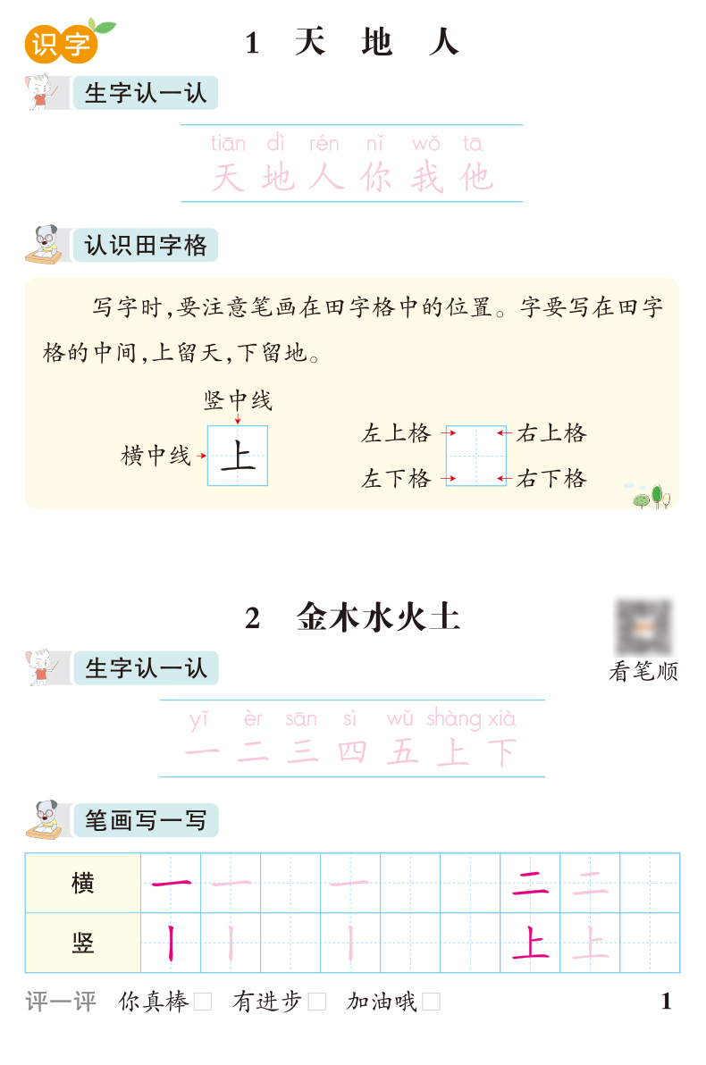 2023秋 小学学霸同步写字课 一年级上册语文 人教版 绿卡图书